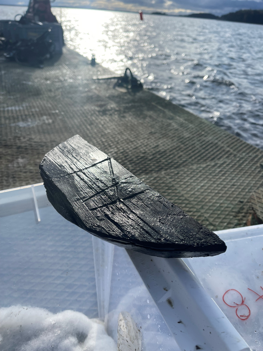 Ett av tunnlocken från en osmundtunna. Hela utformningen är väldigt grovt i sin utformning.