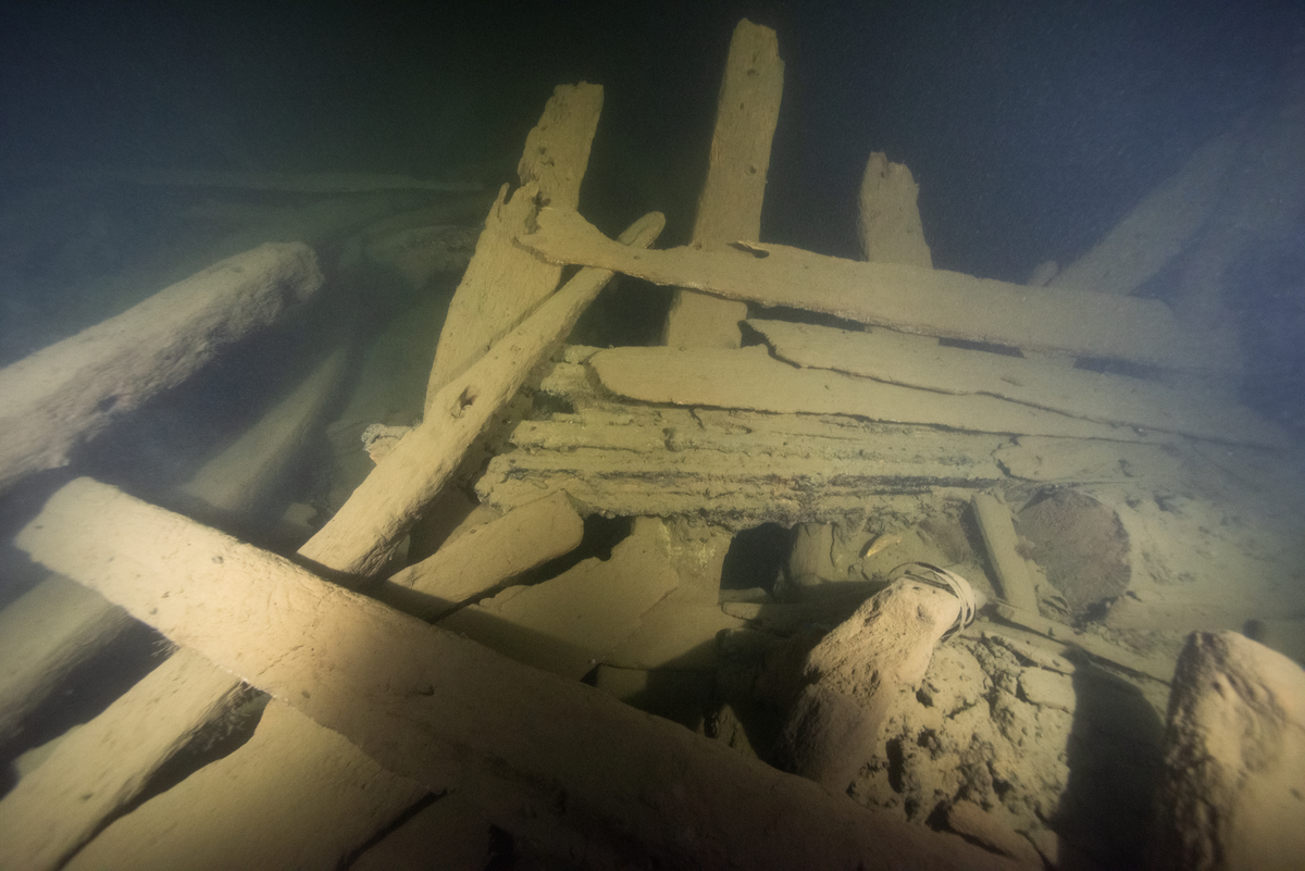 Stångjärnen ligger väl stuvade mot skrovsidan. Nedanför ligger tunnor med osmundjärn.