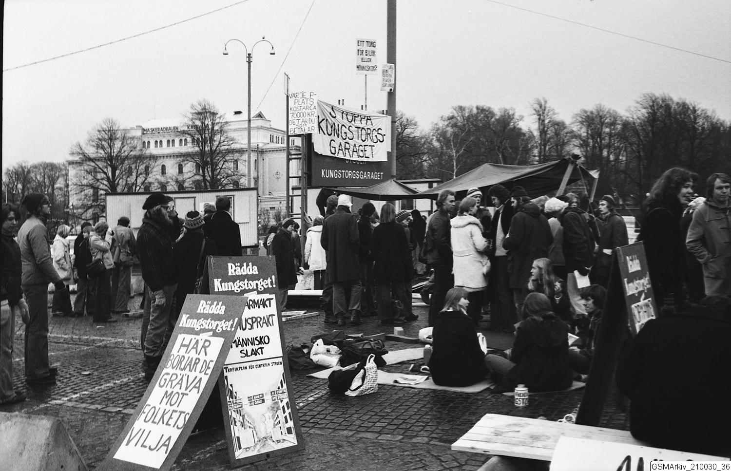 Demonstration mot ett underjordiskt garage på Kungstorget