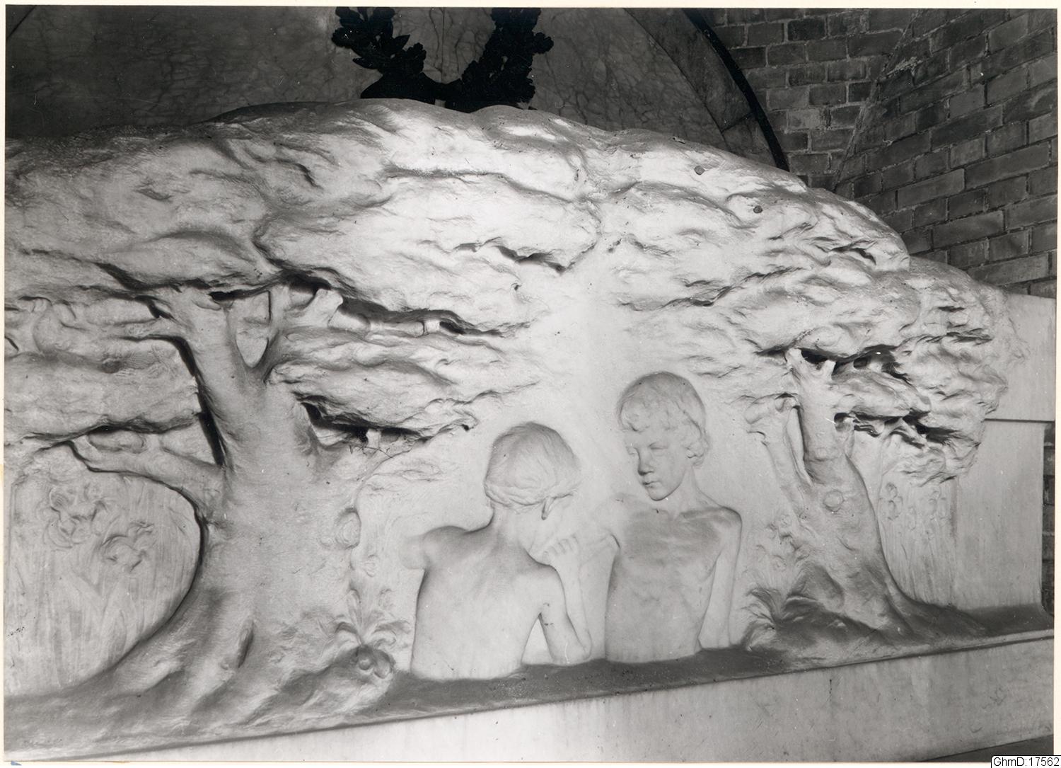 Skulptur på Viktor Rydbergs sarkofag på Östra Kyrkogården.