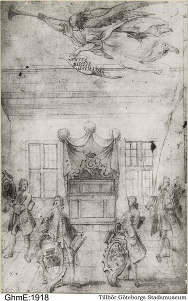 Blyertsteckning ur "Acta jubilaea gymnasii Gothoburgensis" anno 1748.