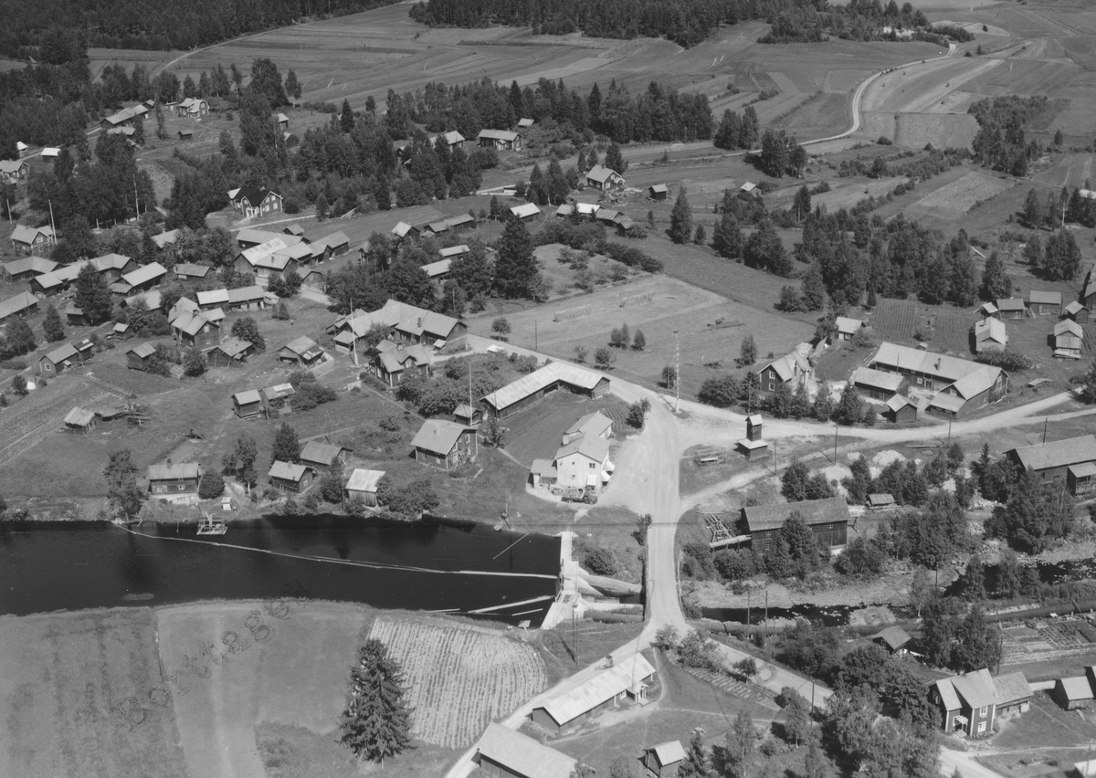 Flygfoto över Ryssa. Flera ortnamn har samband med detta foto: Vika, Ryssa, Gesunda.