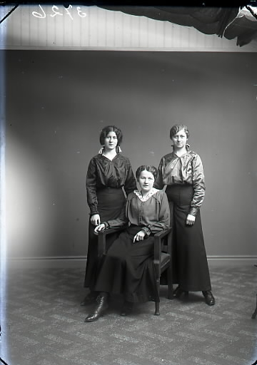 Ateljébild Tre unga kvinnor varav en heter Ellen Malm, Beställare: H Larsson, som även beställt bildnr GB2_1773.