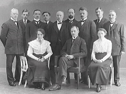 Personalgrupp. Mekaniska verkstaden i Falkenbergs kontorspersonal, varav två är kvinnor.