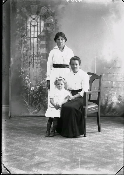 Ateljébild. Två kvinnor och en liten flicka. Beställare: August Larsson, skeppare, Falkenberg.