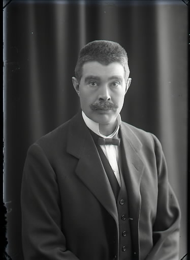 Ateljébild. Bröstbild av doktor P. Åberg i kostym och fluga.