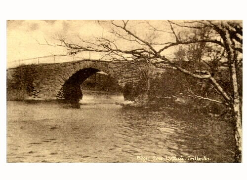 Vykort, "Bron över Lyftaå", notera stavningen. Stenbro över Löftaån i Frillesås socken.