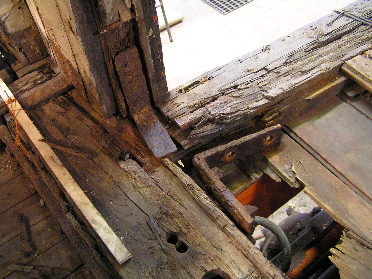 Skadat hörn i vestibulen av SJ Ro2 2702.