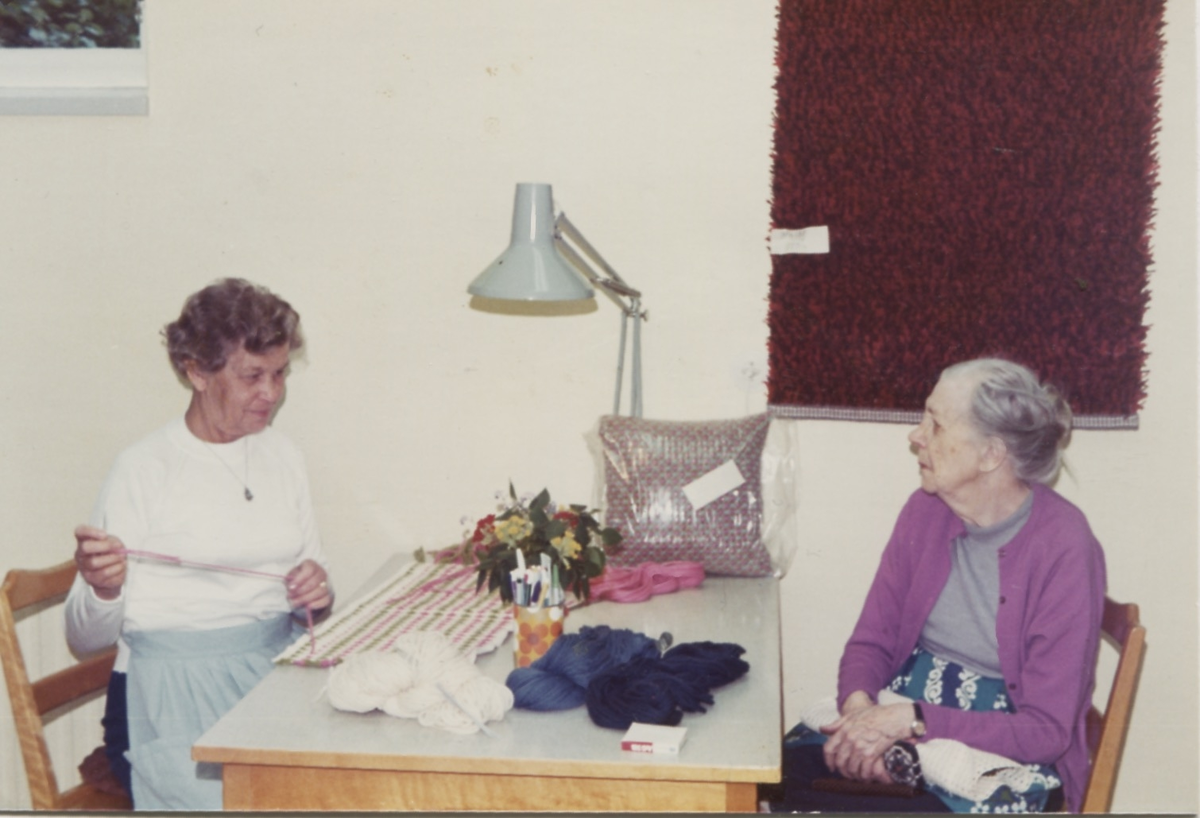 Terapin i Brattåshemmets bottenvåning 1970-tal. Sömnad för Anna-Lisa Andersson och Olga Holmén.