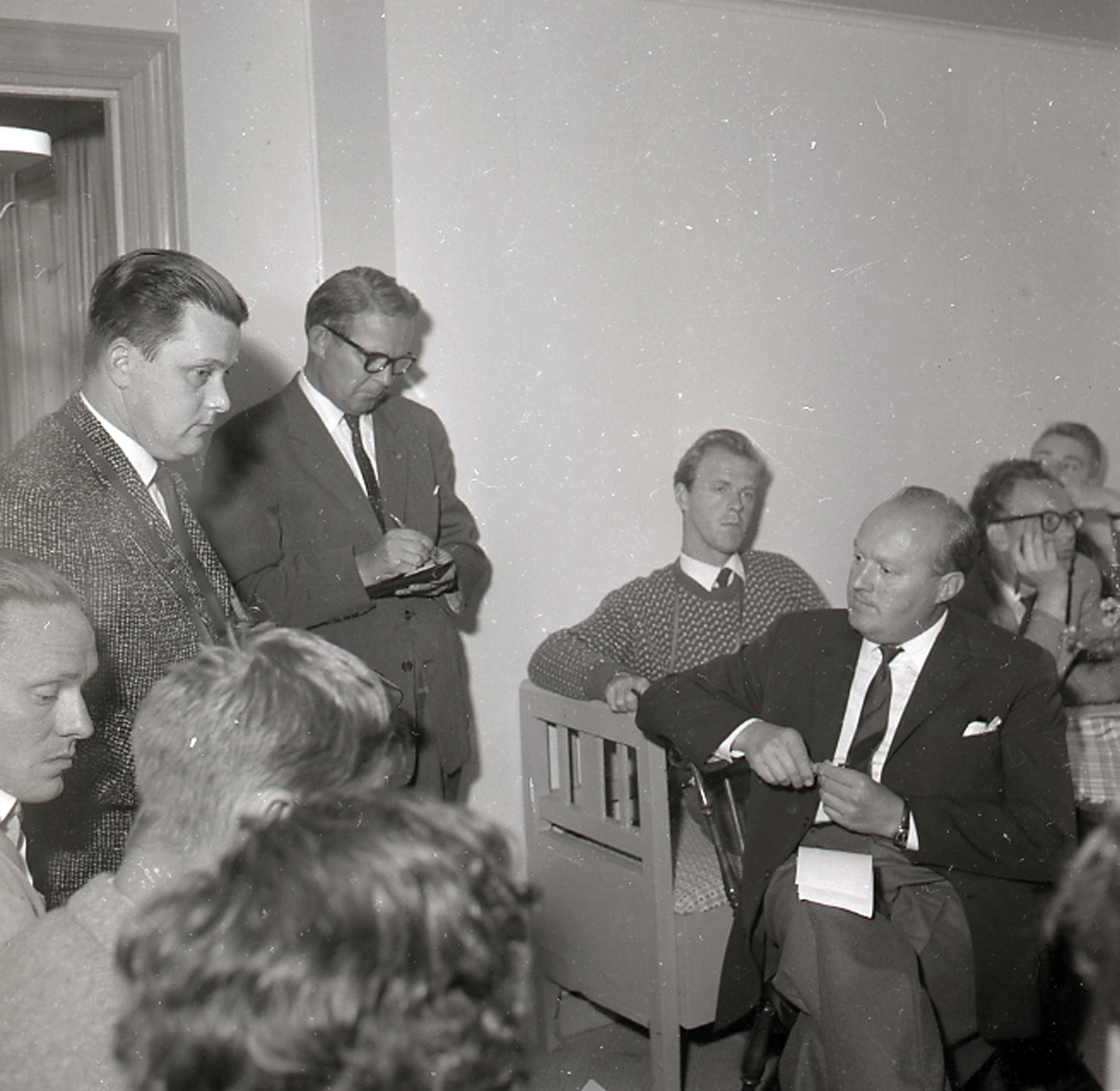 Möjligen en presskonferens i samband med en brand i Hagby, Norra Möckleby.