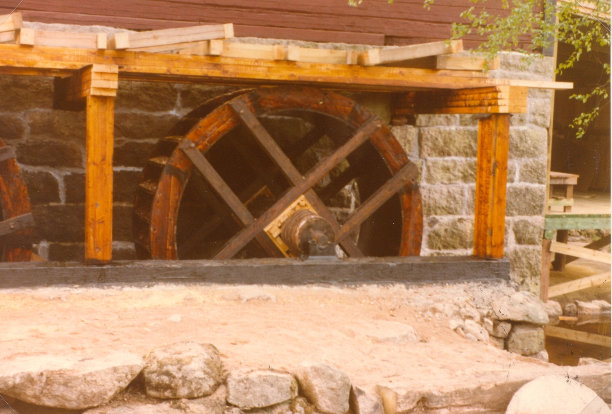 Vattenhjul på Stensfors kvarn under restaureringen 1976-1977.