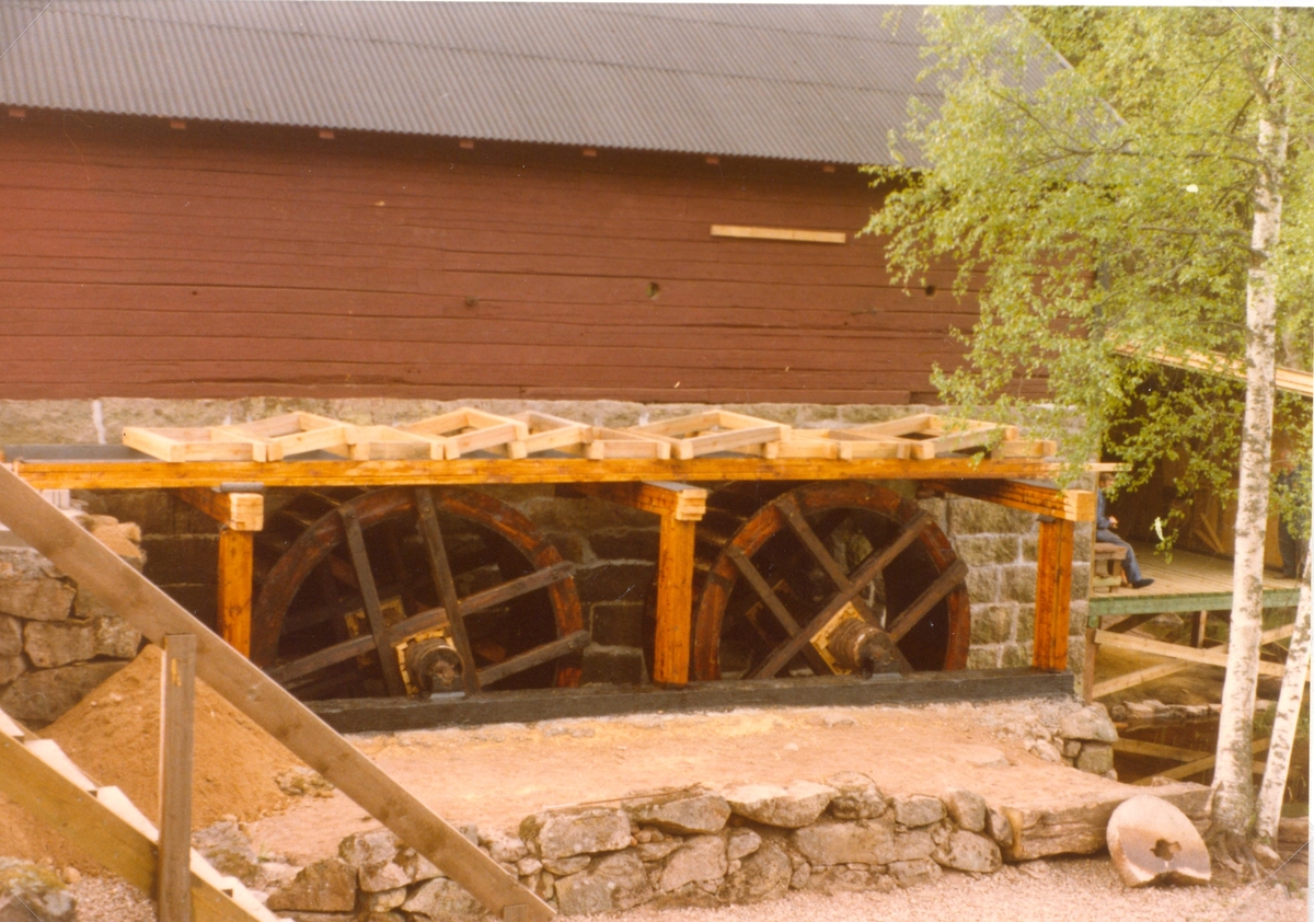 Vattenhjul på Stensfors kvarn under restaureringen 1976-1977.