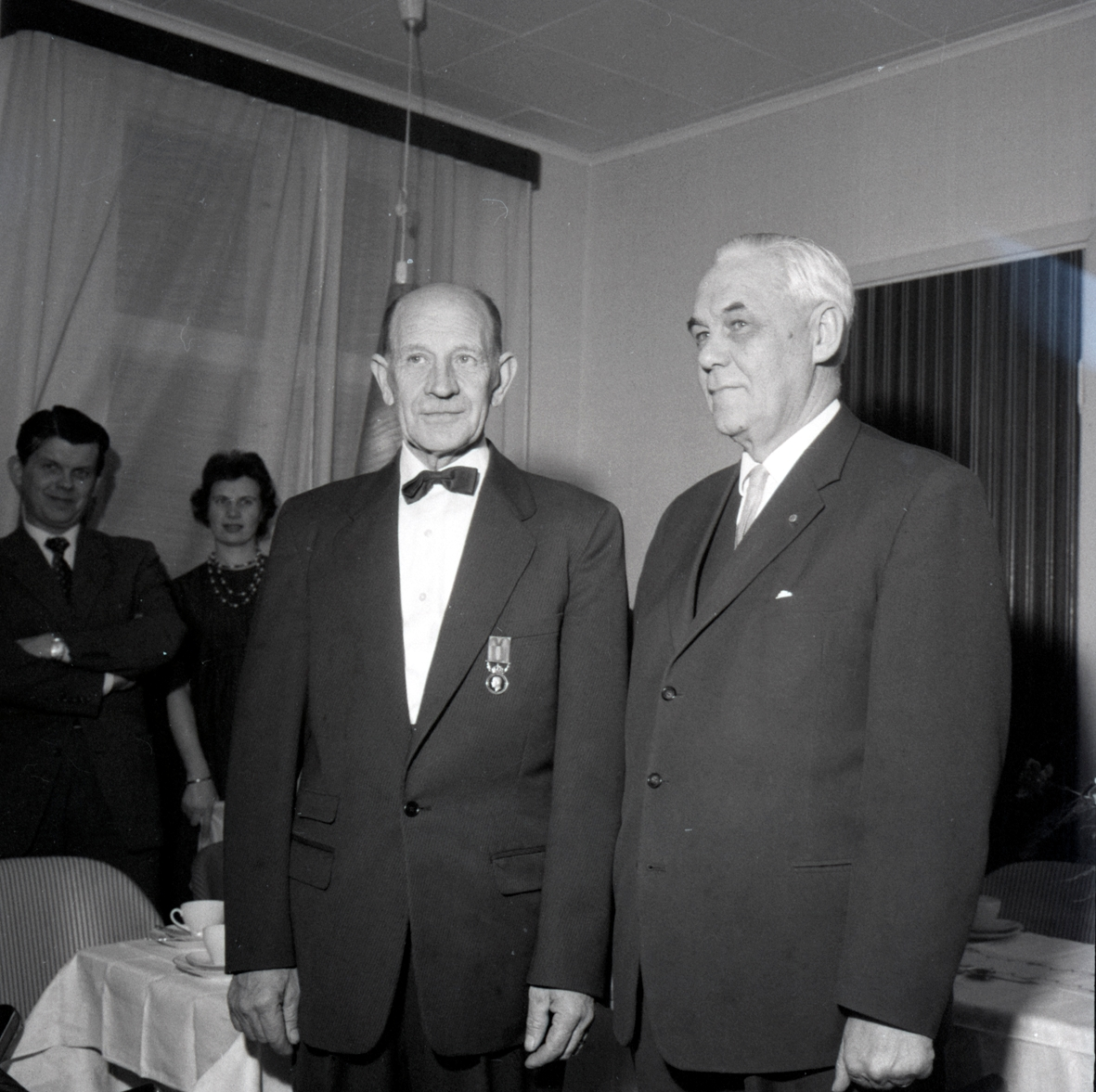 Medaljöverlämning och middag i Föra 10/2 1960. Postdirektör Axel Engers, Fru Berta Nilsson, Föra. Postmästaren Cir Ewers, Borgholm.