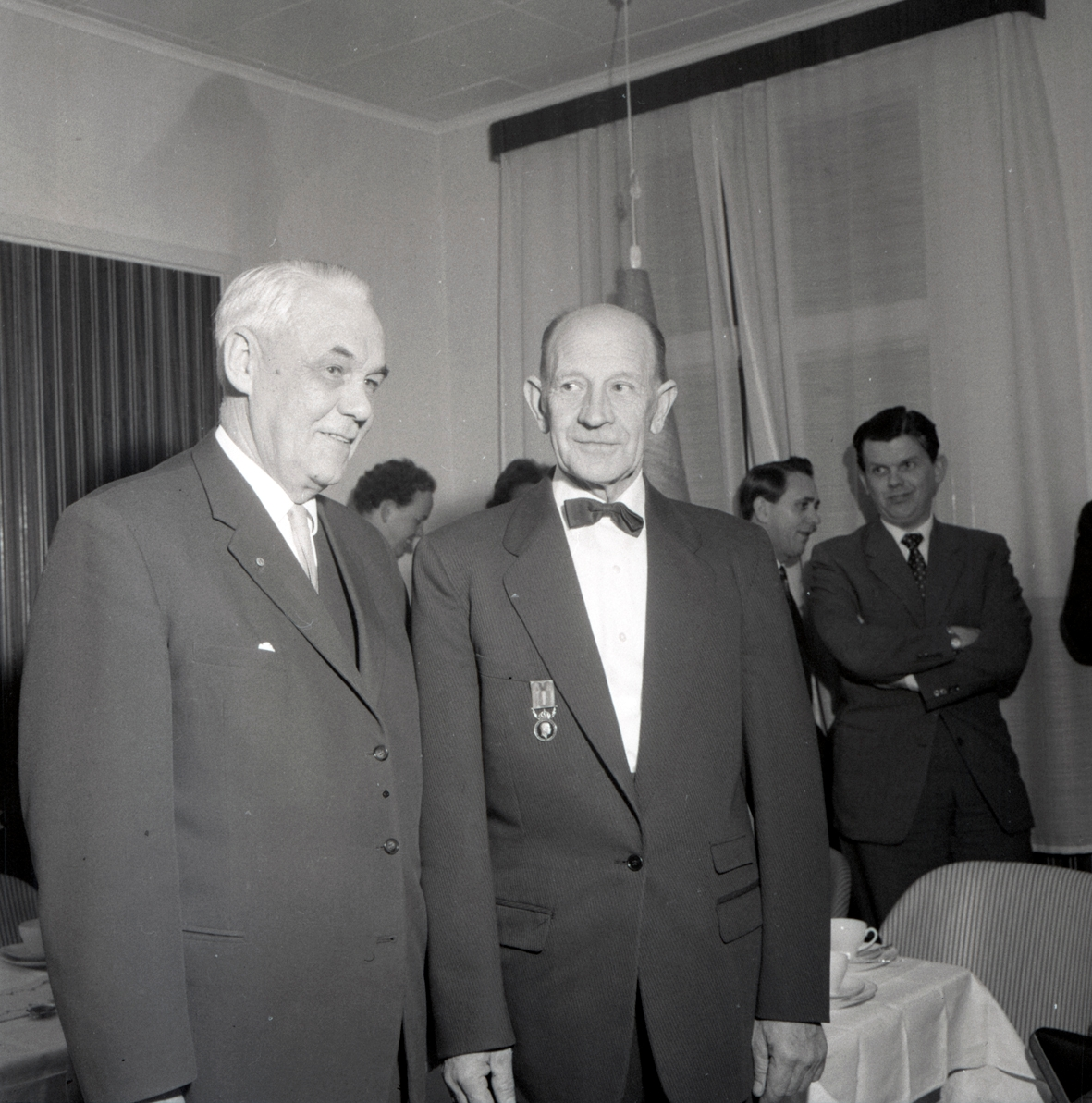 Medaljöverlämning och middag i Föra 10/2 1960. Postdirektör Axel Engers, Fru Berta Nilsson, Föra. Postmästaren Cir Ewers, Borgholm.