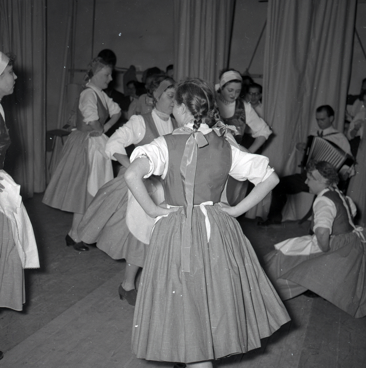 Bild tagen i samband med flyktingar ifrån Ungern 1956. Folk som dansar i förmodlingen Godtemplargården i Borgholm. Hösten 56 - våren 57.