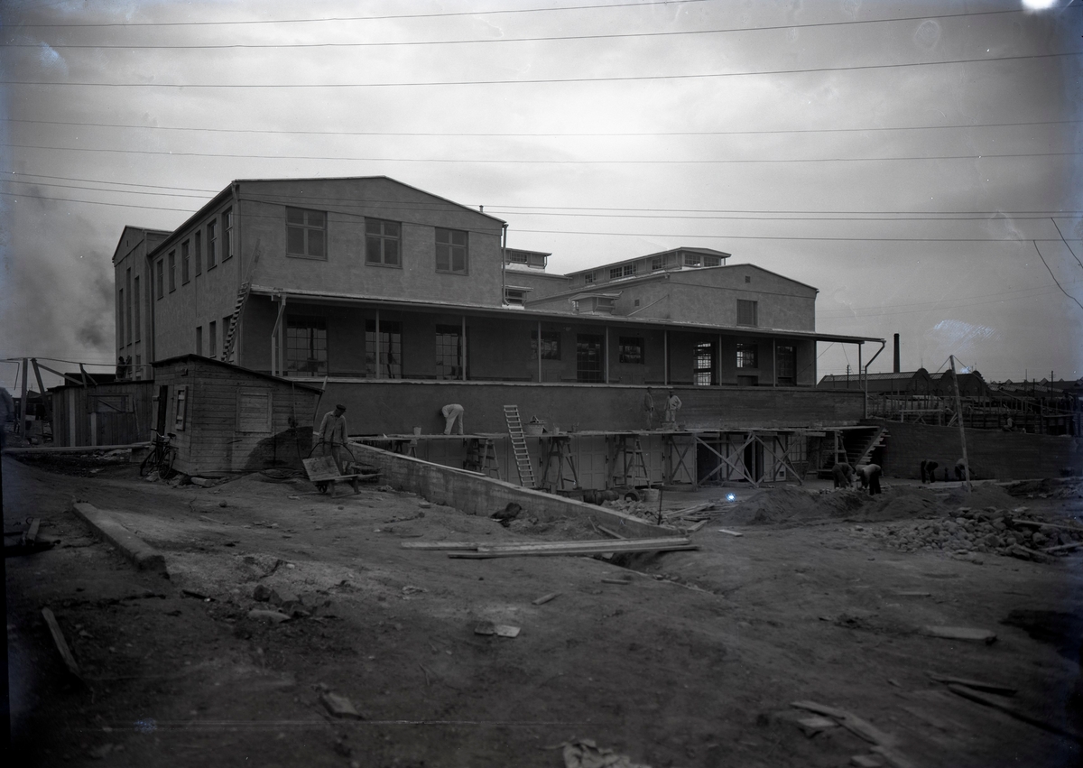 Byggarbetare vid en industribyggnad. Slakteribolaget.