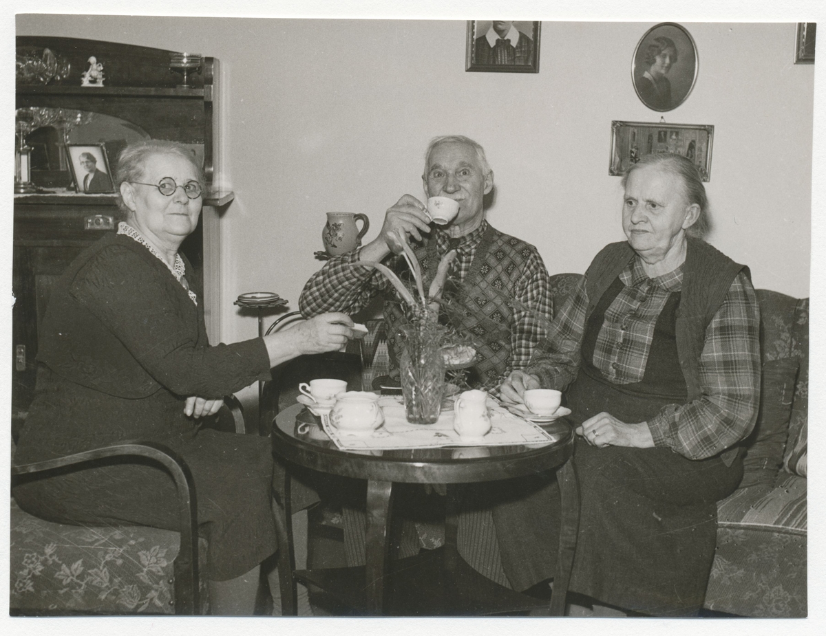 Ålderdomshemmet Falkenberg, boende dricker kaffe.