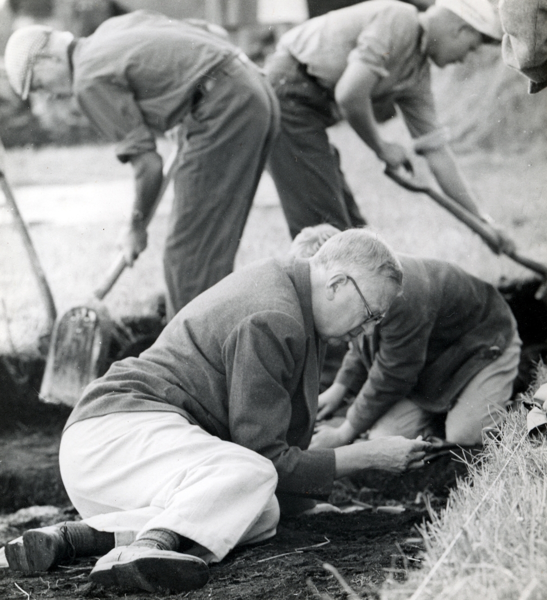 Kung Gustaf VI Adolf, som var känd för sitt intresse för arkeologi, deltog vid utgrävningarna av Skedemosse.