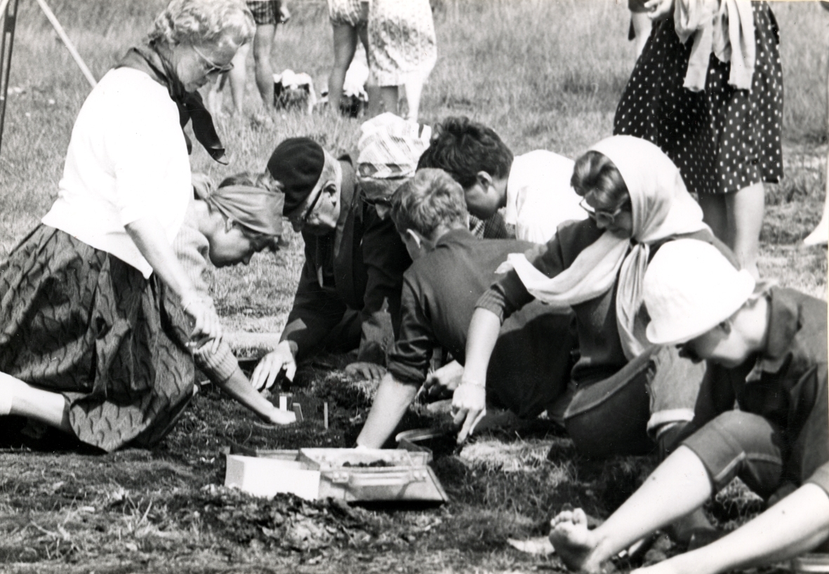 Kung Gustaf VI Adolf deltar i utgrävningarna vid Skedemosse.