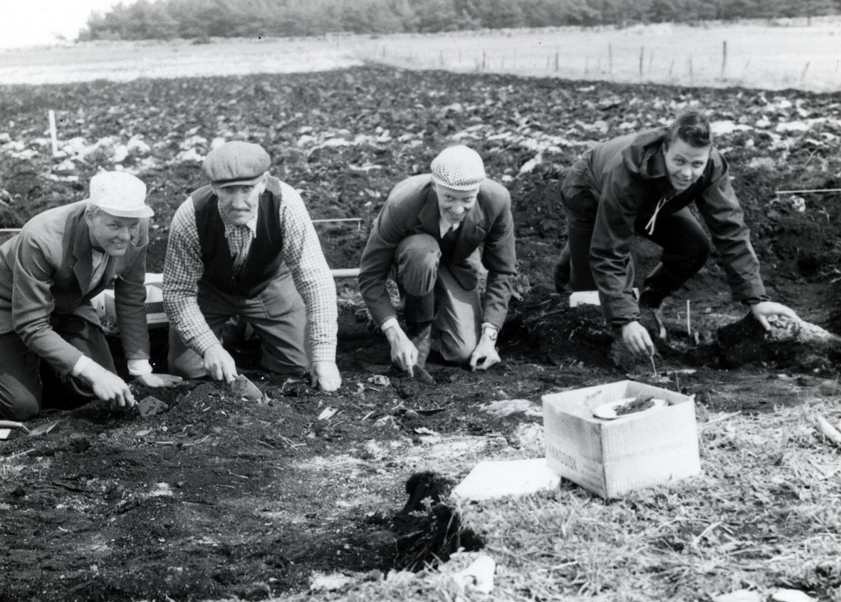 Ulf Erik Hagberg (längst till höger) vid utgrävningarna i Skedemosse.