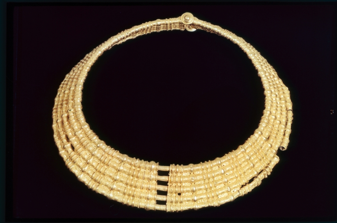 Femringad halskrage av guld från folkvandringstid påträffat i Färjestaden.