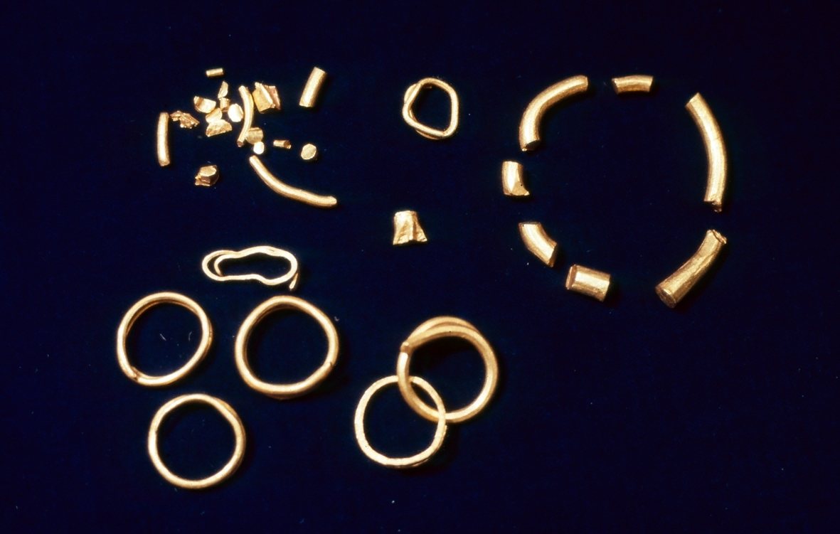 Guldsmycken från romersk järnålder som påträffats i Skedstad.