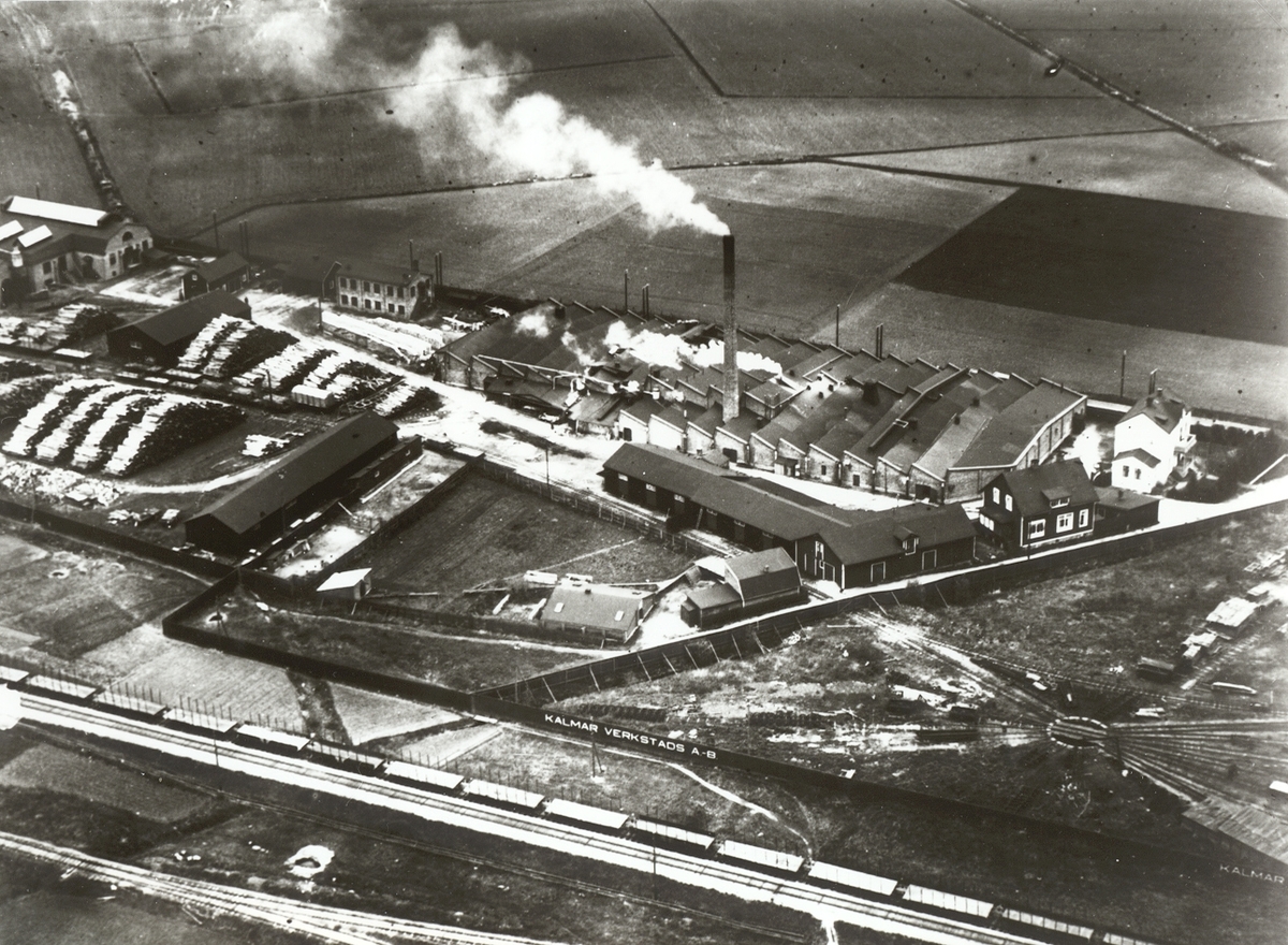 Flygfoto över Kalmar Verkstadsindustri AB taget från söder.