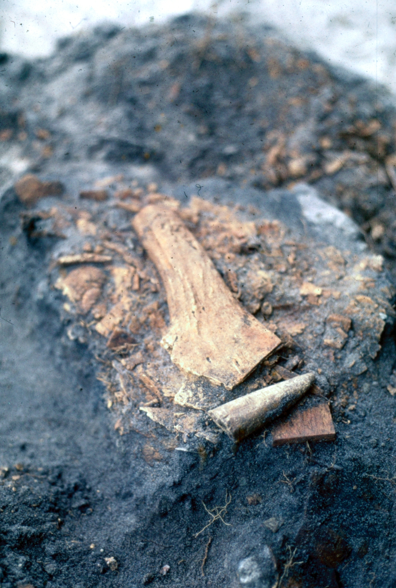 Koncentration av bearbetat horn och ben på Solberga 4:11, under utgrävning i september 1972.