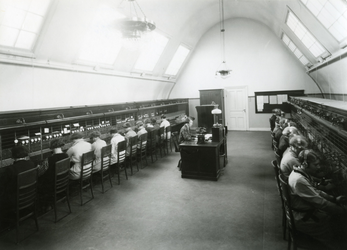 Telefonister på telefonstationen i Kalmar 1930-talets början.