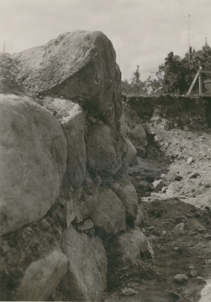 Arkeologisk undersökning av den medeltida stadsmuren i Kalmar.