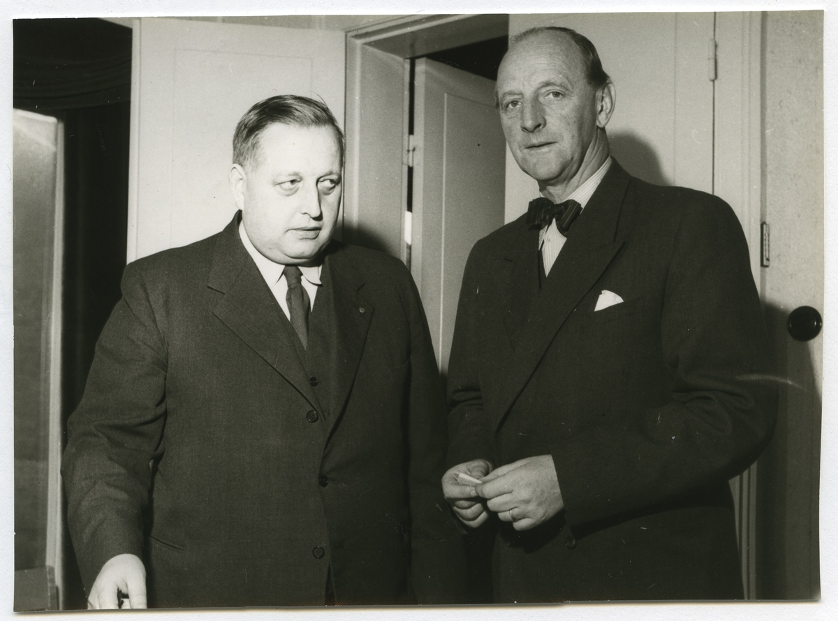 Till höger: ryttmästare Tore Rickerth, till vänster: direktör Einar Andersson, Mejeriförbundet.