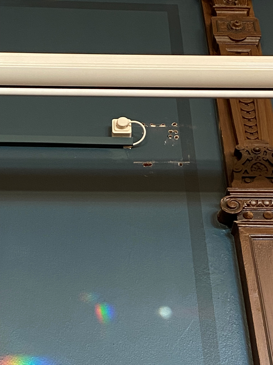 Söderhamns rådhus, sessionssalen, målad vägg, eldragning.