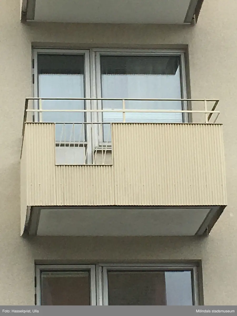 Husfasad med fönster och balkong till bostadshus vid Hagåkersgatan i Bosgården, Mölndal, år 2019.