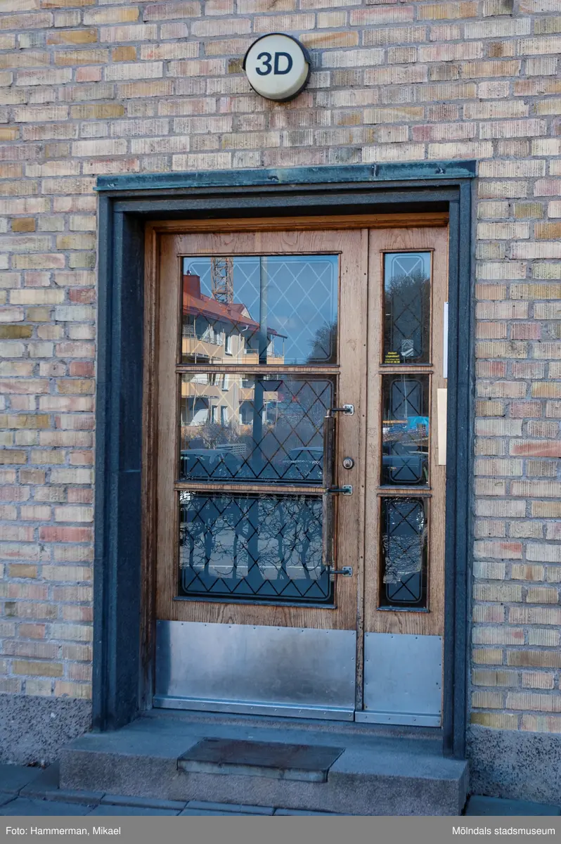 Porten till bostadshuset Hagåkersgatan 3D i Bosgården, Mölndal, april 2013.