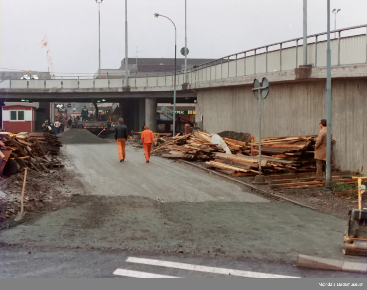 Mölndals centrum, omkring 1975-1980. Vägarbete vid Nygatan.
