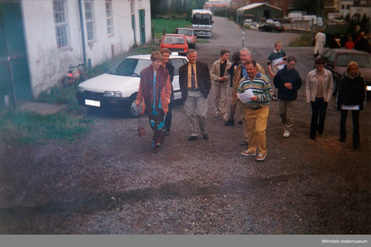 Invigningsfest i "Nya" Teaterhuset den 19 september 1998. Personer är på väg från parkeringen in i ladan.