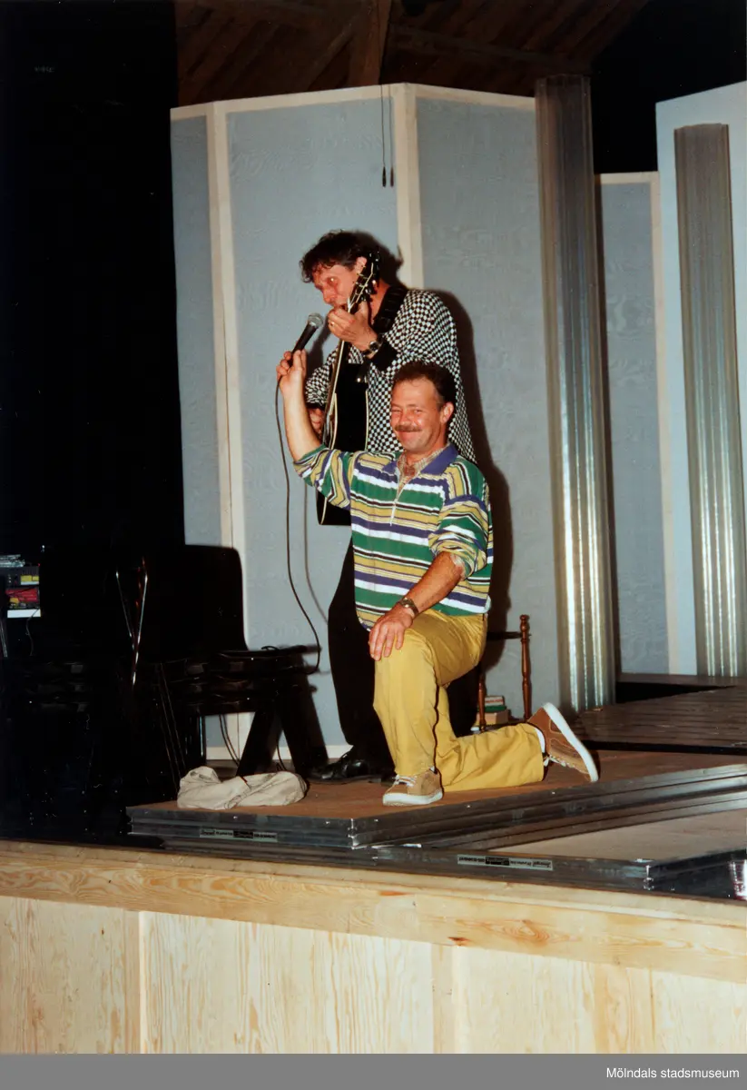 Invigningsfest i "Nya" Teaterhuset den 19 september 1998. Två personer står på scenen.
