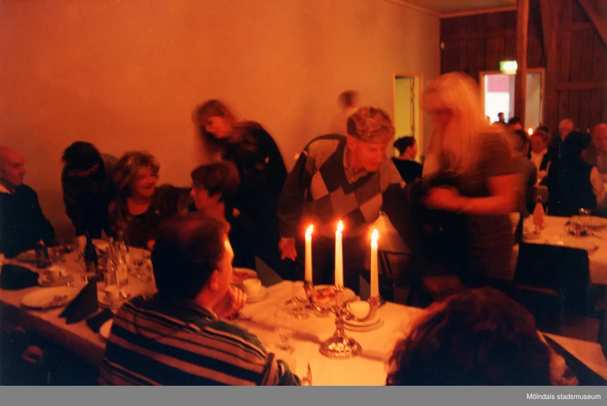 Invigningsfest i "Nya" Teaterhuset den 19 september 1998. Personer sitter och äter vid långbord. På borden står tända ljus.