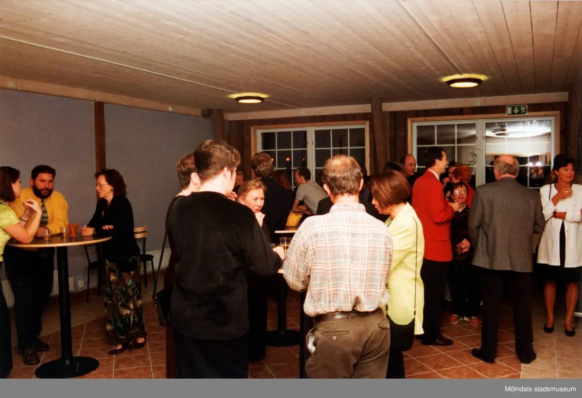 Kultur- och fritidspersonal är på förvaltningsträff i Teaterhuset hösten 1998-1999. Närmast i mitten ses amatörteaterkonsulent Janne Sandberg bakifrån.