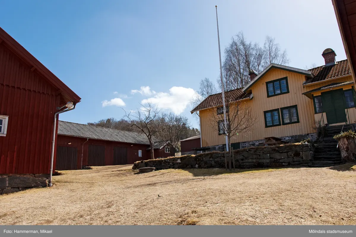 Ladugård och bostadshus på hembygdsgården Börjesgården i Lindome, Mölndals kommun, i april 2013.