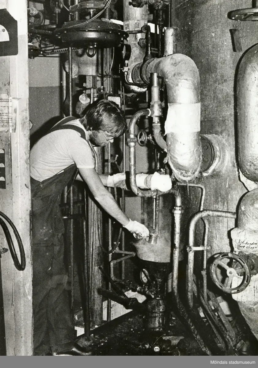 En man i arbete på fabriken Soab Berol Kemi i Mölndals Kvarnby, år 1977.