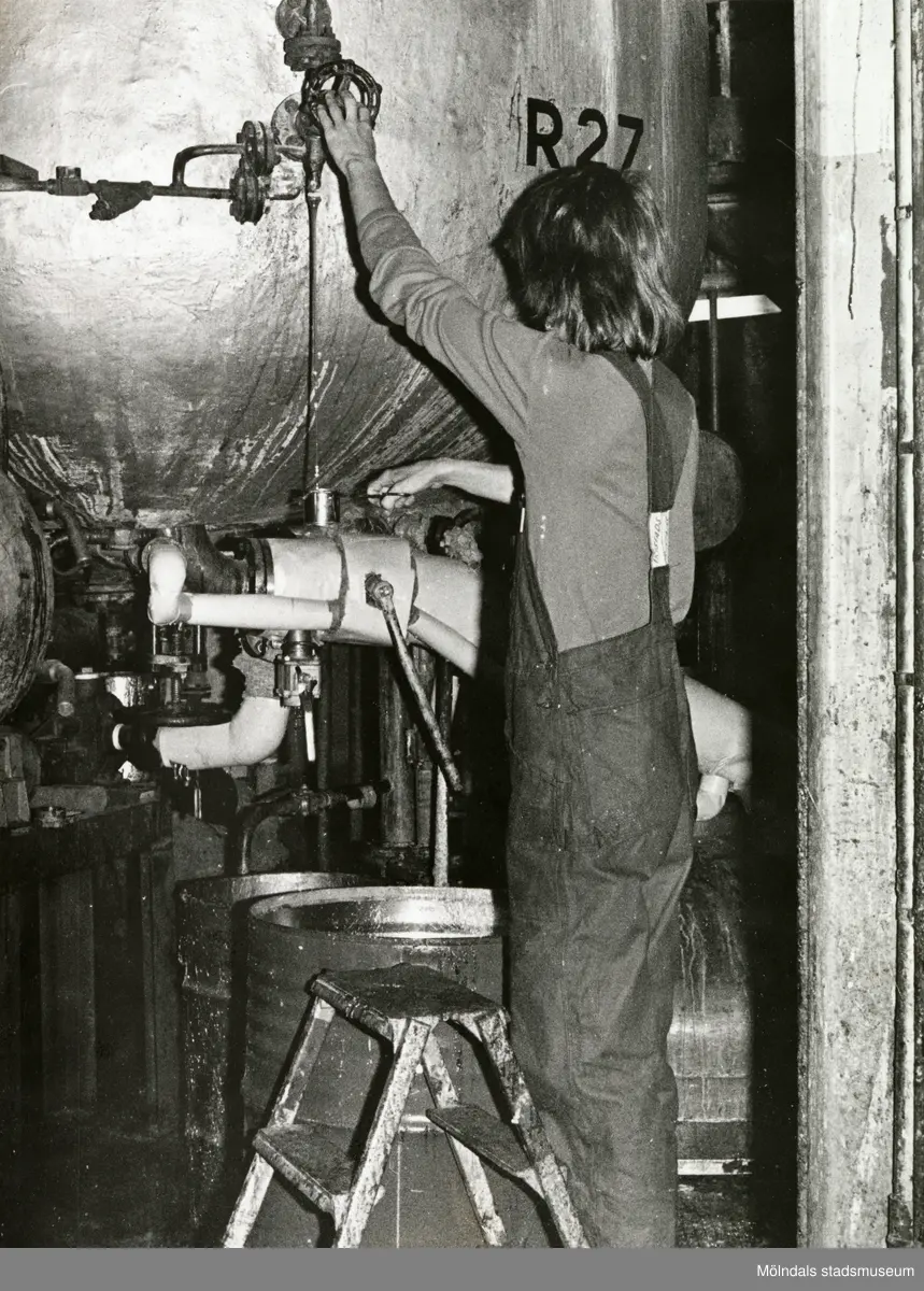 En man i arbete på fabriken Soab Berol Kemi i Mölndals Kvarnby, år 1977.