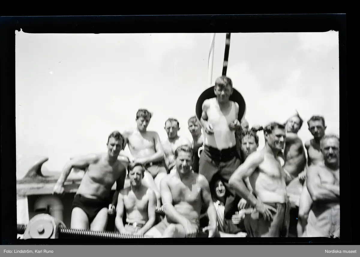 Porträtt av en grupp bestättningsmän på ett fartyg.