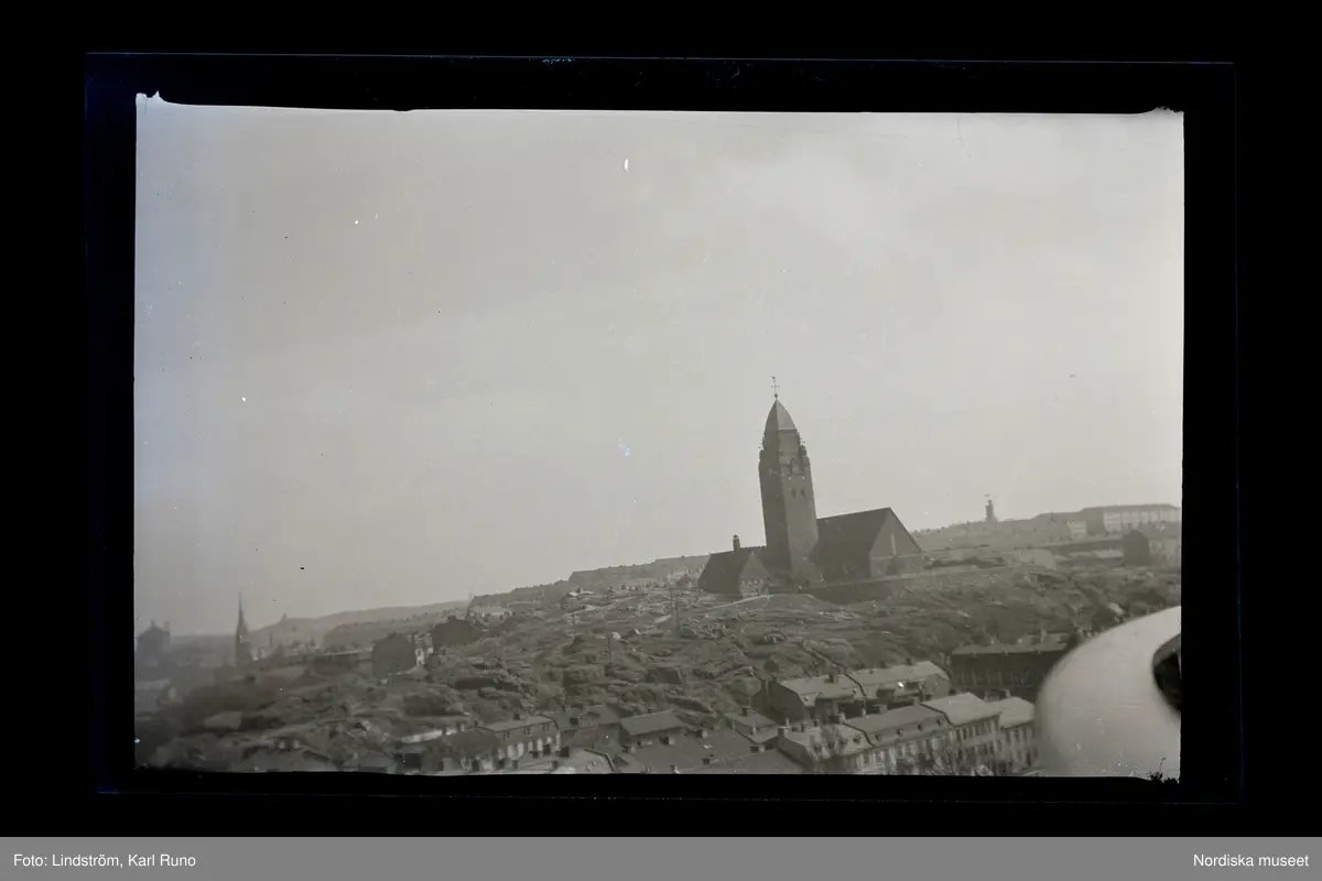 Vy över Göteborg med Masthuggskyrkan.