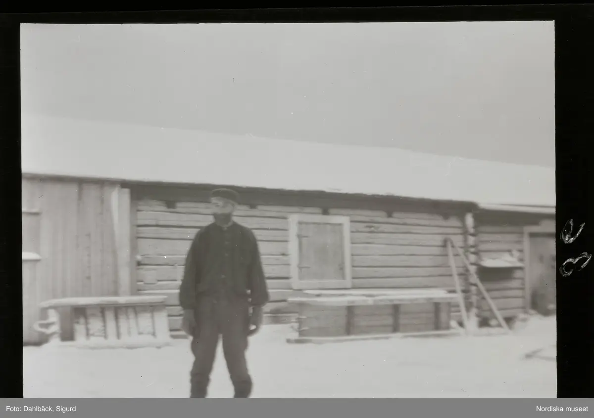 Fotografens anteckning: Dito gård (Karl Anton Holmbergs gård), gamla fähuset m. lada + Karl Anton H.