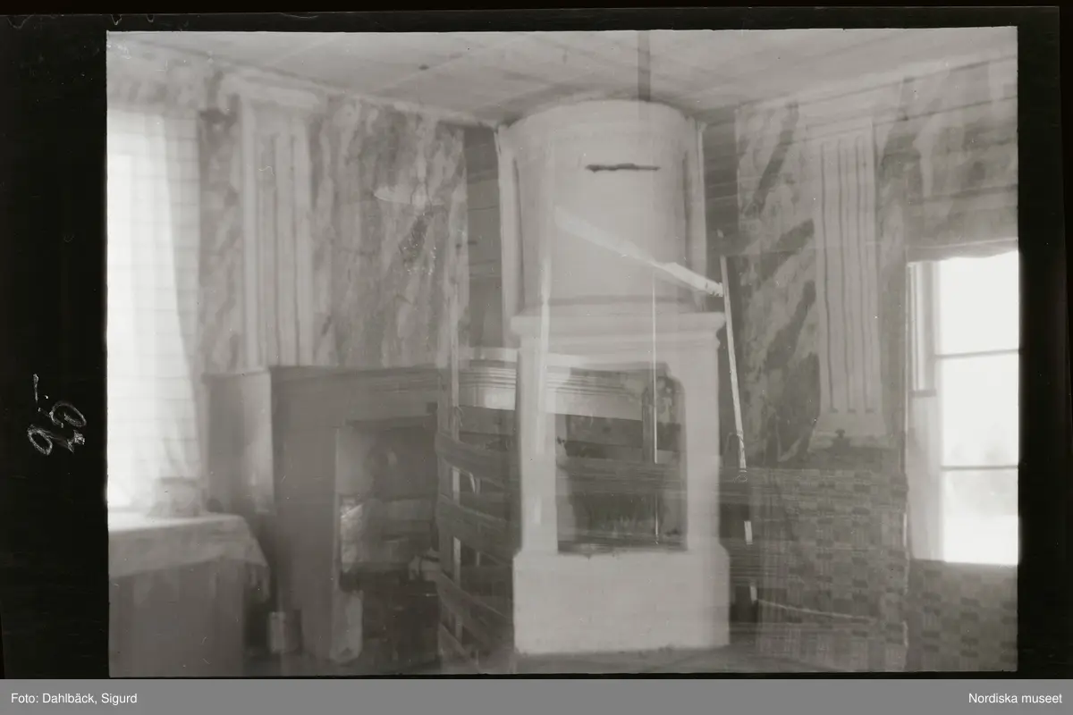 Fotografens anteckning: Dito gård (Karl Anton Holmbergs gård), i salen med målningarna, ryssmärkena på golfvet.