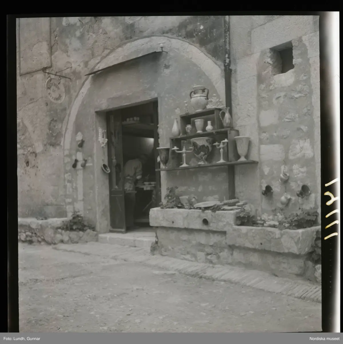 1950. Frankrike. exeriörbild utanför en keramikverkstad