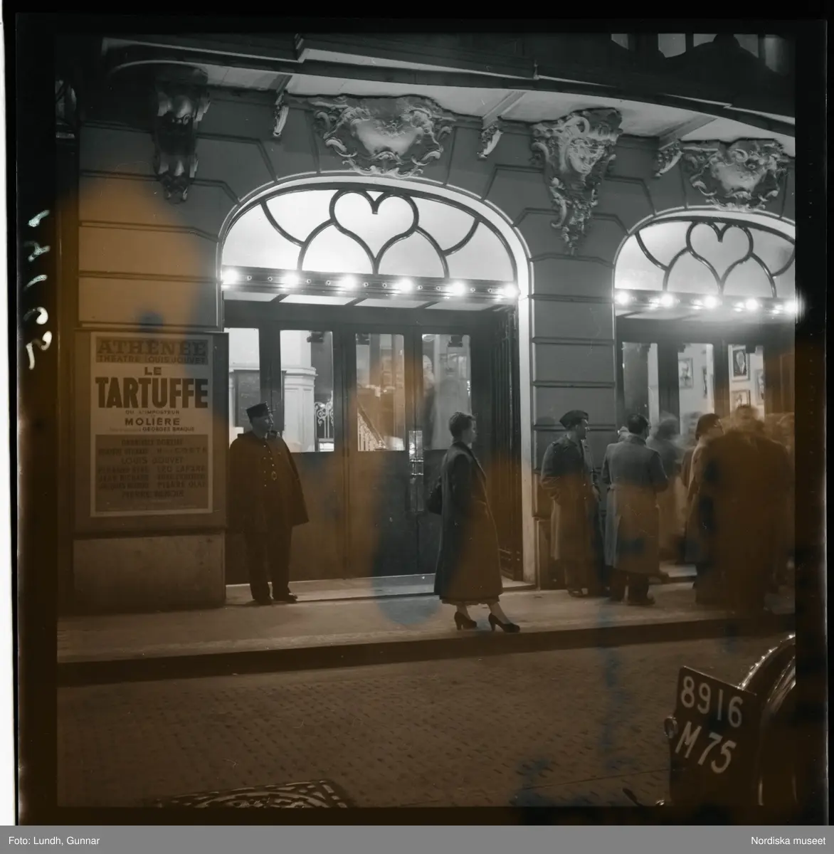 1950. Paris. Utanför Athénée Theatre Louis Jouvet där det spelas Le Tartuffe.