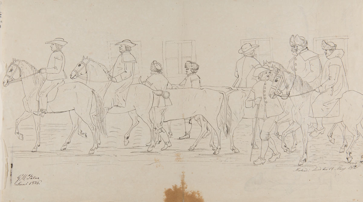 Lund 1826. Marknad i Lund den 14 Mars Tuschteckning av G.W Palm