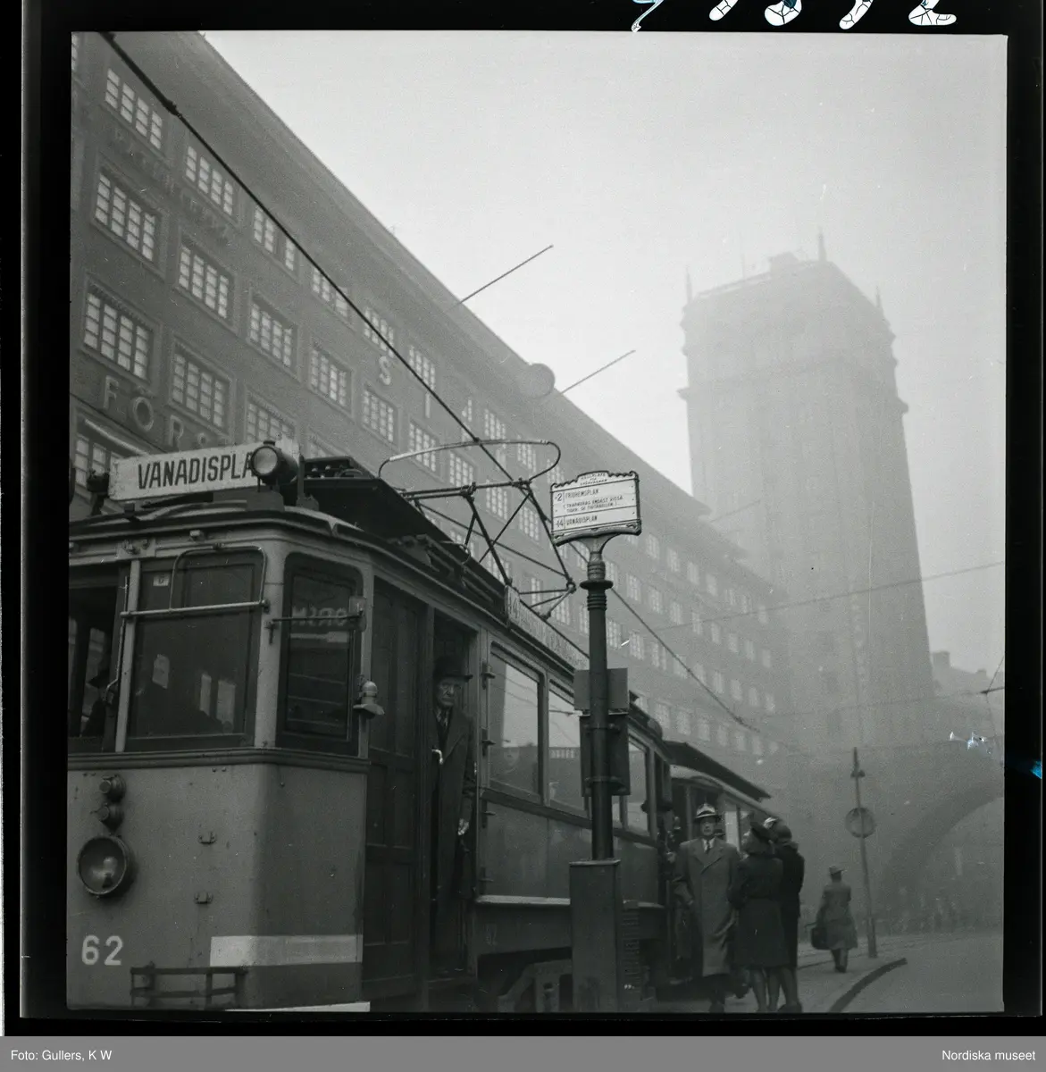 542 Dimma. Spårvagn med destination Vanadisplan vid hållplats på Kungsgatan.